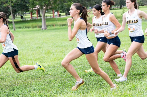 This cross country season started on July 28th and has had a very strong start. The team is led by Coach Trish Butler, who has been a strong leader for the past 20 years at Saint Thomas Aquinas High School, and has made a big impact. Butler is also accompanied by her assistant coaches, Jon Gardner and Bobbette Stewart. The cross country captains are senior Ella Collins, and sophomores Taylor Gold and Charlotte Lee.