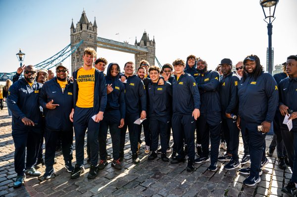 The St. Thomas Aquinas football team received a once-in-a-lifetime opportunity to play against the NFL Academy in London, England. Following their blowout win the previous week, the Raiders took a nine-hour flight on October 4, 2025. Even though the Raiders had a football game to play, what’s a trip to the capital of England without some extraordinary sightseeing?